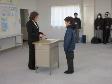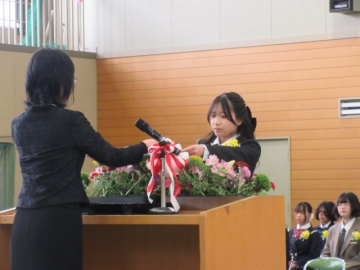 代表児童が、賞状を受け取ります。