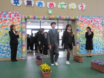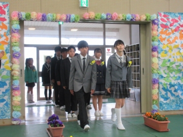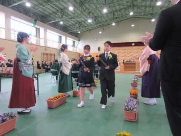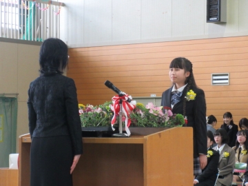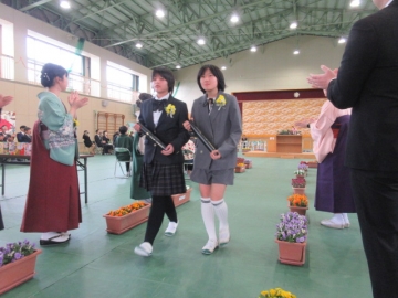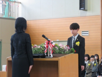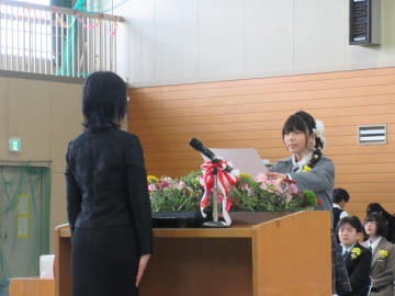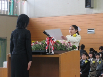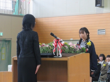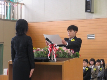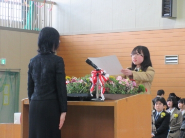 6年生の学級委員が代表して任命状を受け取ります。