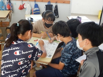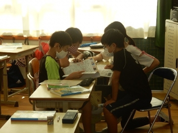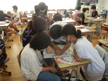 修学旅行が近づいてきました。子どもたちは、自らが作った「しおり」や訪問先のリーフレットを使って、2日間の見どころなどを確認し合っていました。