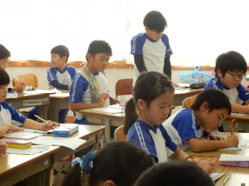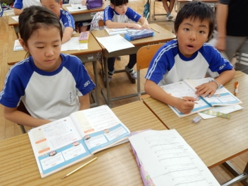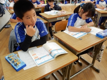 小数の問題です。「2・8は、2と▢が何こ分」とか、いろいろな条件でこたえています。