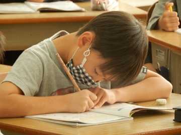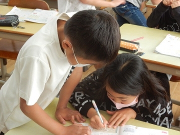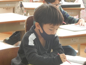 文章題に合った式の立て方について学習していました。文章題を解く時は、使う数字の順番にも気をつけて式を立てる必要があります。しばらく見ていたら、「答えが同じやで、いいやん。」と言っていた子も「そういうことか。」とつぶやいていました。
