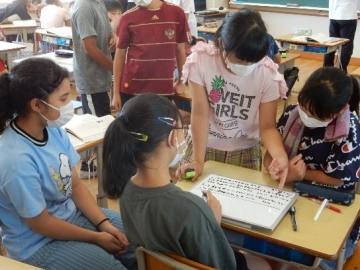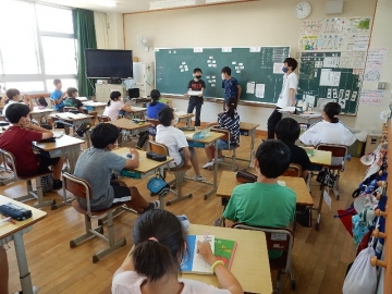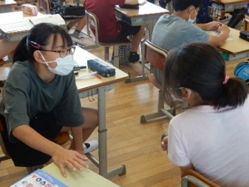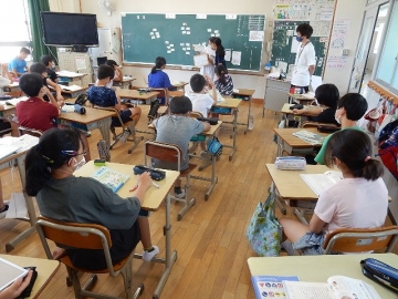 話し言葉と書き言葉について学習していました。それぞれの特徴や役割などを理解し、使い分けの基礎を身に付けることがめあてです。授業者は、子どもたちが話し言葉の特徴などを考える活動の時に、話し合いやプレゼンテーションの行い方などについても指導していました。