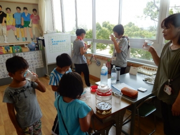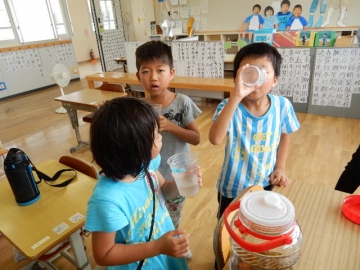 がんばっておそうじをしたので、ごほうびの梅ジュース。一学期お疲れさまと乾杯しました。