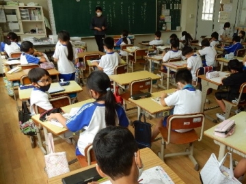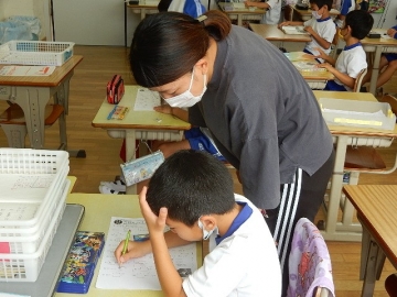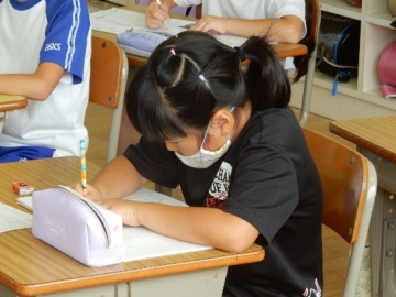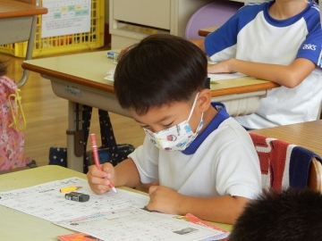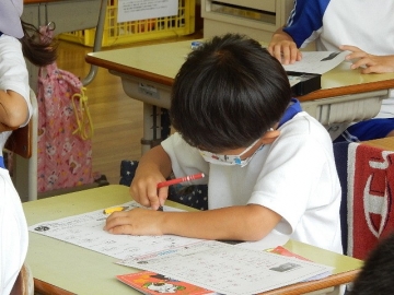 テストプリントを使って漢字の復習を行っていました。問題に答えるだけでなく、分からなかった漢字も調べて解く活動です。子どもたちは、完答をめざし、粘り強く取り組んでいました。