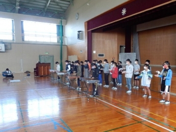 体育館を使って、かんべっ子広場の発表曲を練習していました。いつもの音楽室に比べて広さもレイアウトも違うので、歌声などの響き方が全く変わります。そのことが分かった上の練習を、これまで以上に頑張りましょう。
