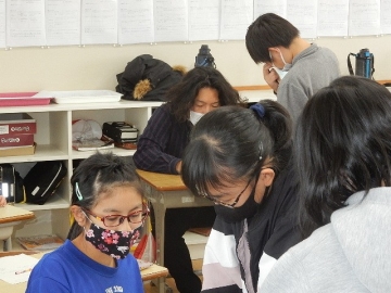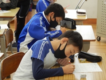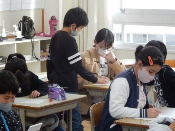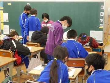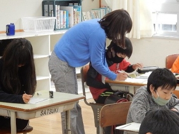今日は、高学年のCAN-DOタイムです。低学年の学級担任や専科などの教員も、各学級をそれぞれに回って、採点や指導などをサポートします。