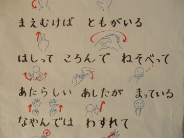 1年の教室に立ち寄ったら、「6年生を送る会」において披露する手話の説明図が掲示されていました。短学活などの時間を活用し、少しずつ練習しているようです。コロナ禍が続いているため、行事そのものを開催することができない可能性も高まってきましたが、子どもたちも教職員もできる限りの工夫を凝らしながら準備を進めています。
