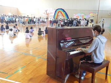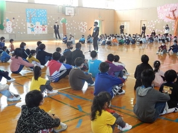 1年の子どもたちと2年から6年までの子どもたちが初めて対面する「対面式」を行いました。児童会本部の主催です。本年度は、1年の子どもたちもマスクを着用しているので、6年の子どもたちが1年の一人一人を紹介する時にそれぞれの顔写真も掲示しました。1年の初々しい姿とともに、6年の1年を甲斐甲斐しく付き添っている姿や2年から5年までが1年を温かく見守っている姿を数多く見ることができた時間でした。