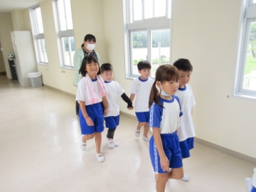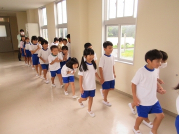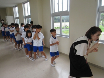 このあと きょうしつへ もどります。おしゃべりをせず、とてもしずかに ほけんしつから でていきます。