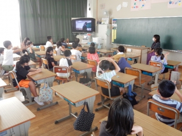 児童集会を開催しました。当初は校内放送を使って行う予定でしたが、もうすぐ退任する前期児童会役員のアイデアを受け、Zoomを活用した形式に変更しました。役員が一人一人ずつ自らの児童会活動を総括したり次期の役員に期待することを述べたりする内容もあって、しっかりとした内容の集会でした。