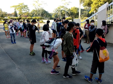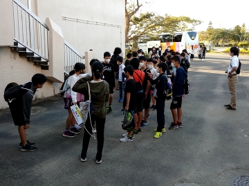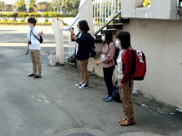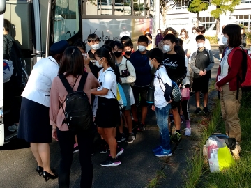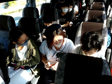 学校を出発しました。訪問先の県南部地域は、今日も明日も雨が降らない