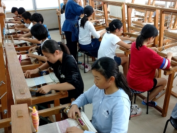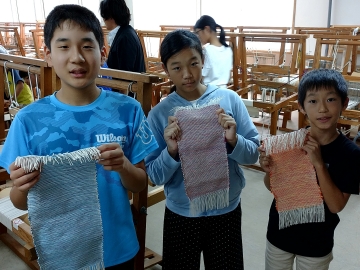 テーブルセンターを織りました。子どもたちは、すぐにコツをつかんで、上手に作っていました。