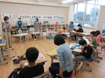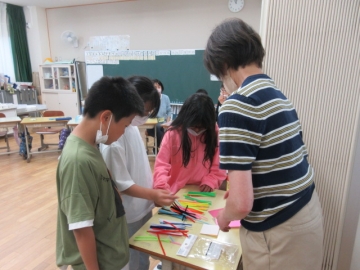 やり方を教えたり、道具を貸してあげたり、助け合って作業を進めます。