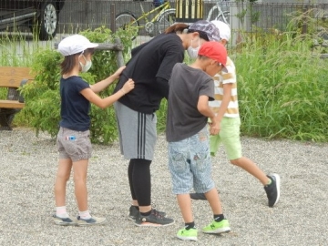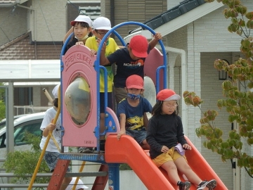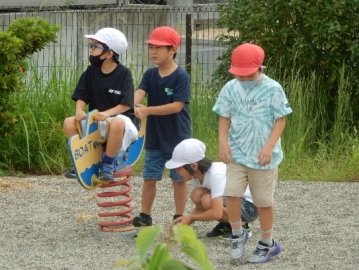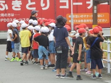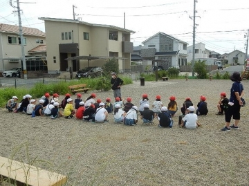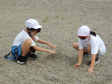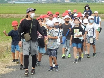 2年の子どもたちが校区探検に行ってきました。今回は、神戸北地区の探検です。スーパーマーケットなどの前を通って地区内の公園まで歩き、ふえおになどをして遊びました。