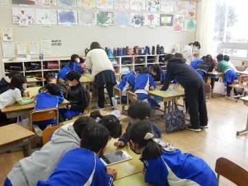 子どもたちがロイロノートを使うことができるよう、3学期もGIGAスクール支援員の方を招へいした授業を続ける予定です。今日の2限目は、2年の子どもたちがソフトウエアキーボードを使って簡単な文章を作っていました。ソフトウエアの学習機能を使って日本語を英語に変えたり、図形機能を使って文字を装飾したりするなど、すぐに使いこなすことができる子どもたちもいます。