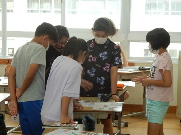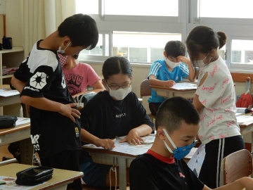 「大昔のくらしとくにの統一」のプリント学習に取り組んでいました。知識の習得だけでなく、資料などを読み取る力の獲得も学びの一つです。そして、各自がじっくり考えたり、周りの子と一緒に調べたりすることも大切な学びです。