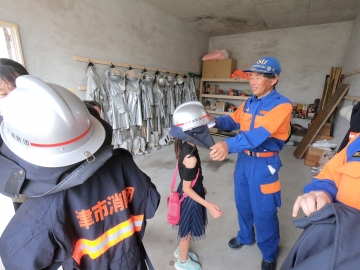 消防団の服を着せていただきます。