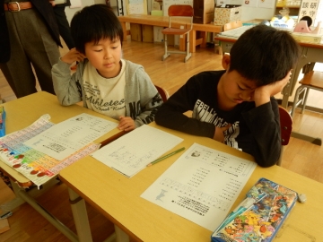 1年生は、拗音などのひらがなカードを作っていました。