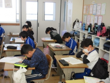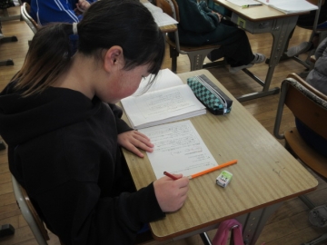 3年生が、これまでの問題を解いてから、先生の解説を聞いています。