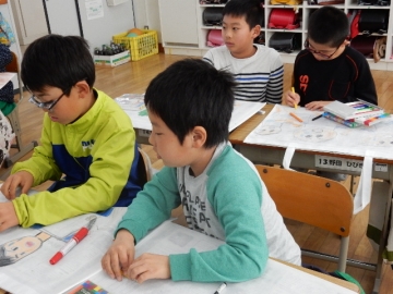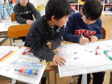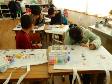 作品ぶくろを作っていました。思い出の絵をかいていました。