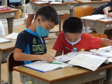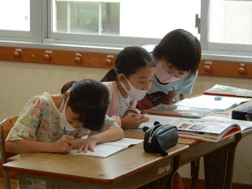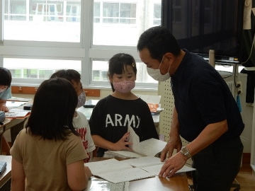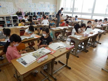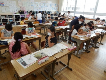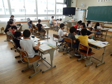 「仕事のくふう 見つけたよ」を学習していました。報告する内容の組み立てを考え、調べたことの報告文を作ります。子どもたちは、グループ毎に力を合わせ、しっかりとそれぞれの学びを進めていました。