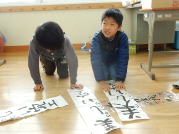 4年生は、「美しい空」のお題です。教室で書いた作品をどちらがいいか意見を言いあっていました。意見は分かれました。