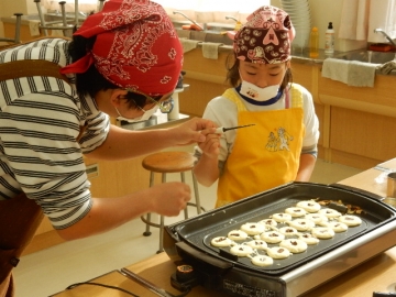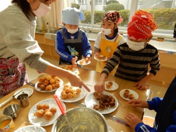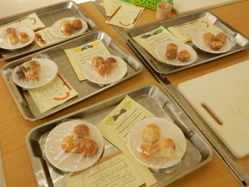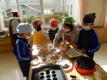 今日は、学習ルームのみなさんがお楽しみ会で、「かわりたこやき」を作りました。ホットケーキミックスで作るたこやきです。たこのかわりに、ソーセージやバナナ、チーズ、チョコなどを入れます。とてもおいしくできあがりましたでの、お世話になっている先生方にもメッセージを添えて持ってきてくれました。とてもおいしかったです。ありがとう。