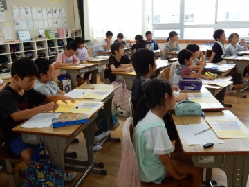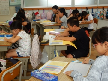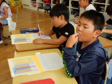 国語の時間の終わりの10分くらいを使って、ローマ字の練習をしていました。あいうえお・かきくけこをやっていました。