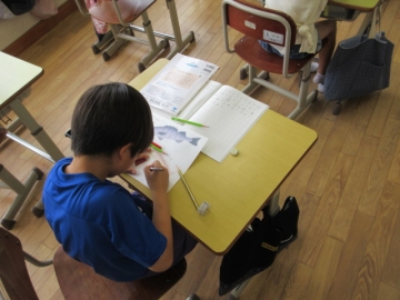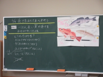 めあて「一ばん長い魚の長さを わかりやすく つたえる。」