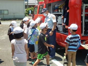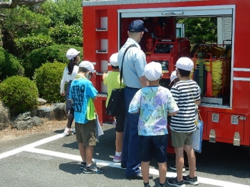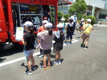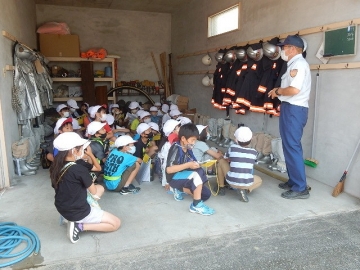 3年の子どもたちは、校区内の公共施設などについて調べています。今日は、神戸出張所と津市消防団神戸分団詰所を訪れ、それぞれの役割などを話していただきました。子どもたちは、熱心にメモを取ったり「すごぉい!」を連発したりしていました。
