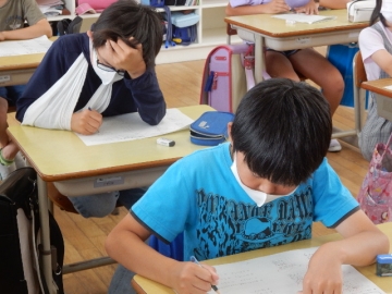 今日は、昨日に引き続いてのCAN-DOタイムがありました。対象は4年から6年までの子どもたちです。いずれの教室も、脳から少し汗が出るような問題を子どもたちにチャレンジさせていました。
