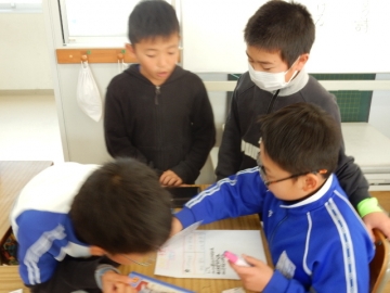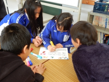 新しい班が決まったので、どんな班にしたいかを話し合って、ポスターを作りました。