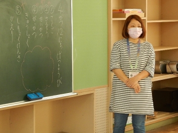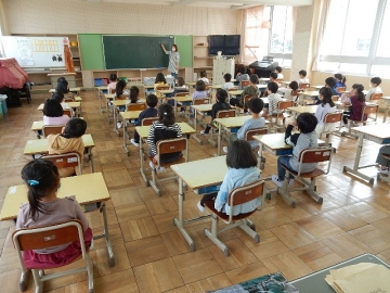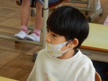 もうしばらくコロナ禍が続くであろうことを踏まえ、子どもたちや子どもたちの活動を支援する教員などの人数が多い1年は、本年度も床面積が広い2階の音楽室を使って授業を行うことにしました。教室が変わっても、子どもたちはしっかりと授業者の説明を聞いたり質問に応答したりしていて、嬉しい限りです。