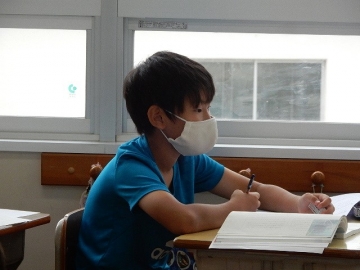 単元「森へ」のプリント学習を行っていました。鉛筆を走らせる音しか聞こえません。長居せずに、静かに教室を出ました。