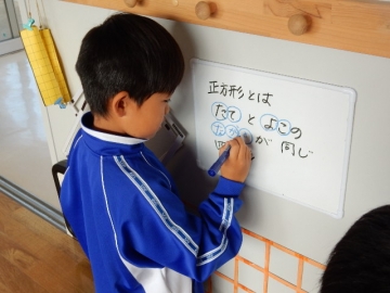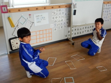 今日は、一斉授業をせず、それぞれの課題をやっていました。一年生は、ミニタワシづくり。3年生は、正方形の性質みつけ。6年生は、ビブリオバトルの原稿書き。