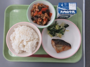 「みえ地物一番給食」の日です。五目豆には、津市で採れた大豆を使用します。