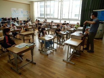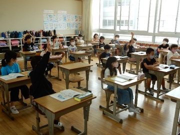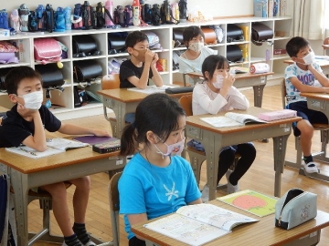 時刻と時間の求め方を学習していました。教具の時計も使って分かりやすく進む授業です。子どもたちも、様々な意見を述べていました。
