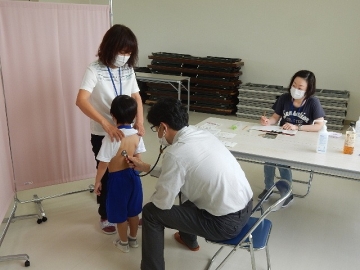 今日は、三重大学付属病院の医師の方に来ていただいて、内科検診を行っています。全ての子どもたちを診ていただくので、給食の直前までかかる予定です。