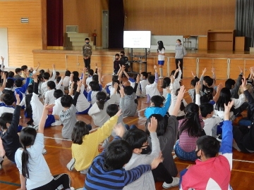 本年度になって初めての児童集会を開催しました。これに先立って、前期の児童会本部役員と各委員長、学級委員の任命式も行いました。児童集会は、児童会本部役員の一人一人が、就任挨拶を述べた後に、自作の「神戸小学校クイズ」を出題したり、皆が一緒に楽しむことができるレクリエーションを行ったりしてくれました。本年度の児童集会も、趣向を凝らした内容を見ることができそうです。