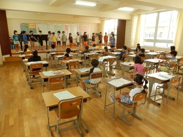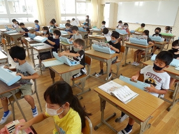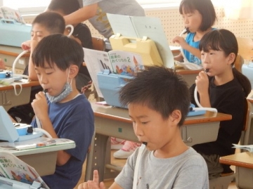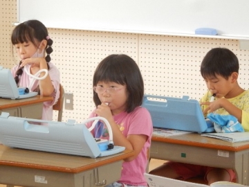 歌声が聴こえてきたので、3階の音楽室に行ってみると、2年の子どもたちが「かえるのがっしょう」を輪唱したり、鍵盤ハーモニカを演奏したりしていました。息が揃った時の合唱や楽器の演奏を聴くと、格別の心地良さを感じます。