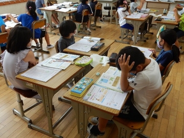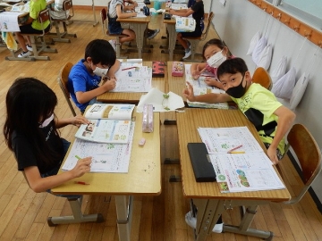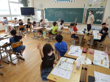 子どもたちが育てているマリーゴールドを使って、植物の体のつくりを学習していました。子どもたちの反応が良く、メリハリを感じることができる授業です。