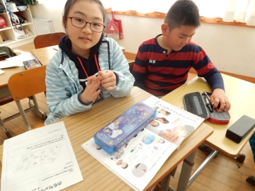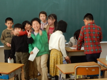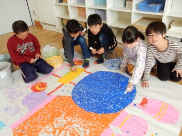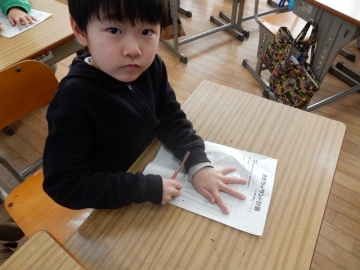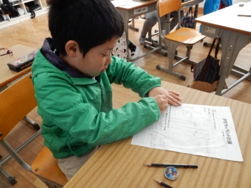 理科の時間に「おもちゃランド」の設計図を完成させ、終わった人は、卒業式用の設営物の貼り絵をしていました。