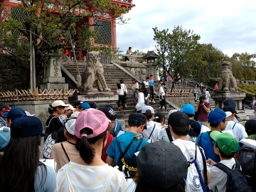 清水寺に到着しました。今日の最後の見学地です。見学が終わったら、班毎に分かれて、京都のお買い物タイムです。