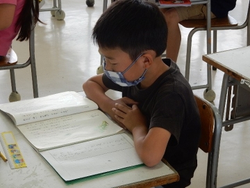 「たんぽぽのちえ」を学習していました。内容が説明文の基本語句を使いながら時系列に沿って展開するので、説明文の構成などを分かりやすく学ぶことができる教材です。子どもたちは、たんぽぽの変化を丁寧に読み取っていました。