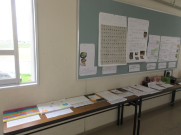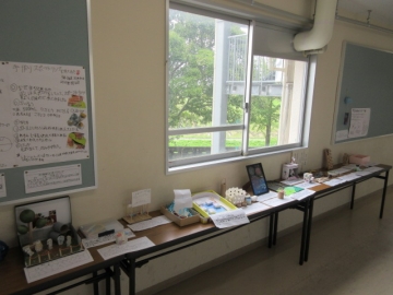 廊下には、夏休みの作品が展示されています。「自由研究」もありますね。