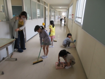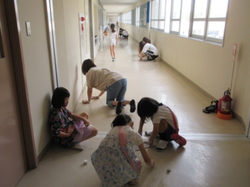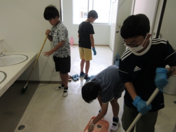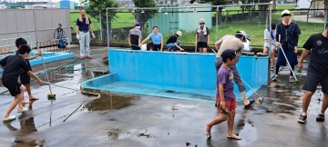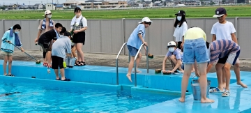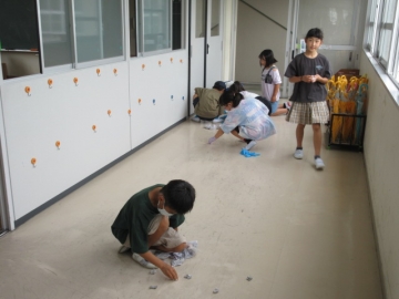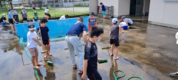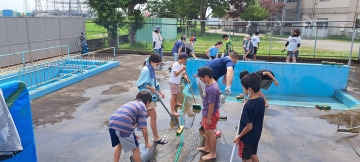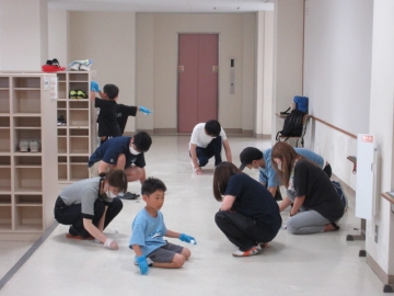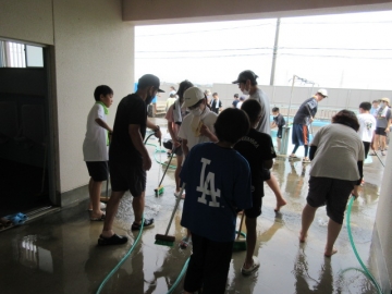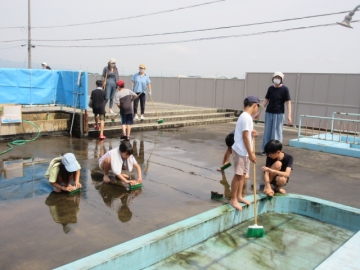 お家の方といっしょに、日頃十分に掃除するのが難しい場所やプール周辺を、きれいに掃除しました。