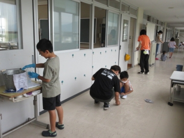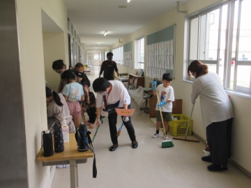 PTA会長さんが、作業終了へ向けた放送をしてくださいます。