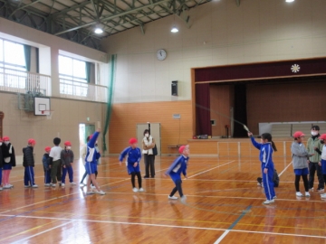 みんなが跳びやすいよう縄を回すには、コツが必要です。