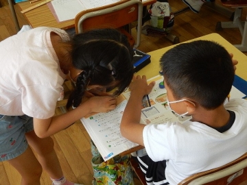 単元「長さのたんい」を学習していました。物差しを使った長さの測り方を学ぶとともに、単位が必要であることに気付いて「センチメートル(㎝)」などの読み方や書き方を理解するところです。今日のめあては「長さをはかってくらべよう」でした。