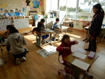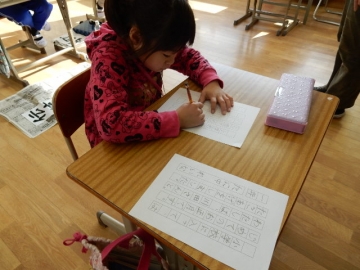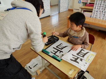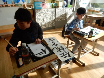 学習ルームで、じっくり落ち着いて、書初めの練習をしていました。
